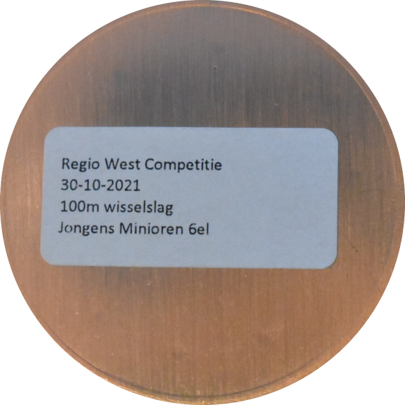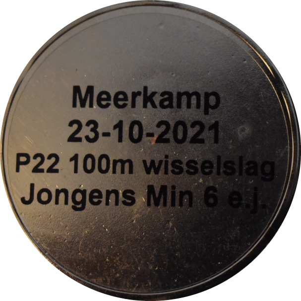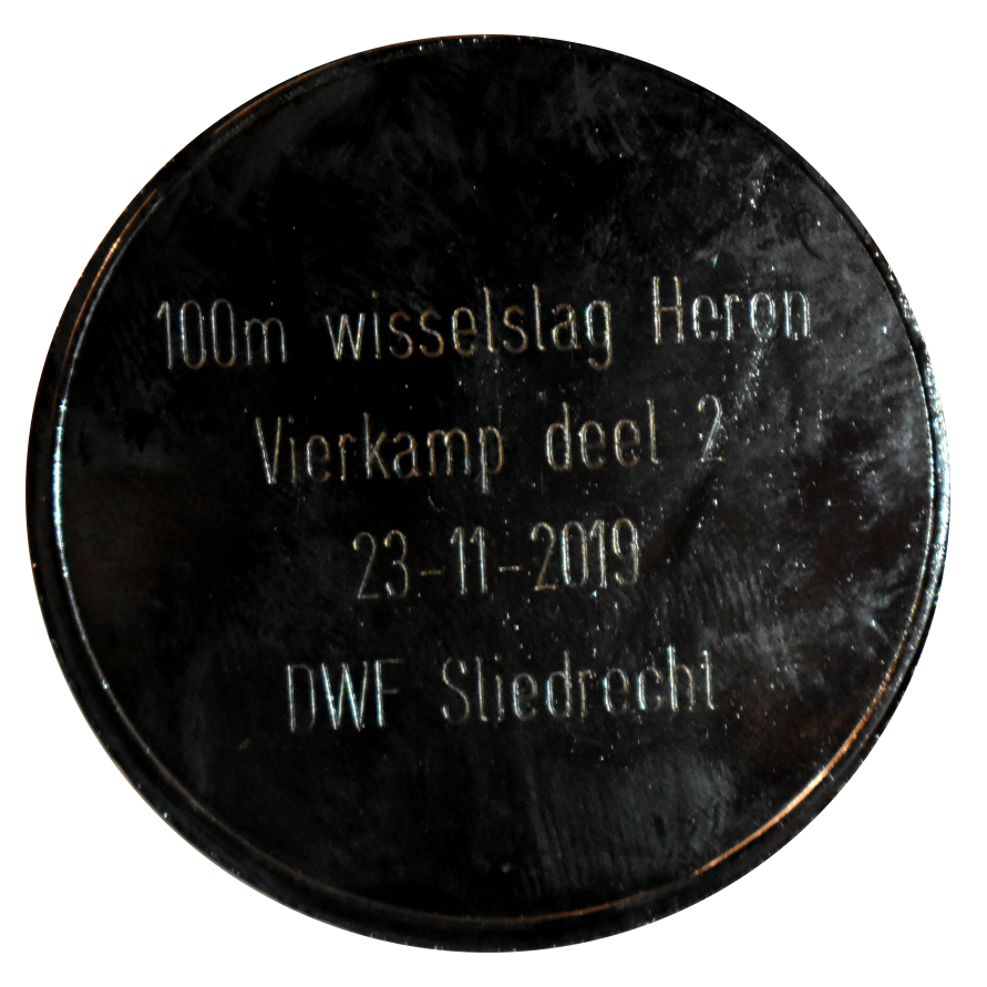 Geplaatst op 25 november 2019Medaille: 100m wisselslag (4x25m), 1:52.59 Behaald tijdens: Vierkamp deel 2 Klik op de medaille om deze te draaien.
