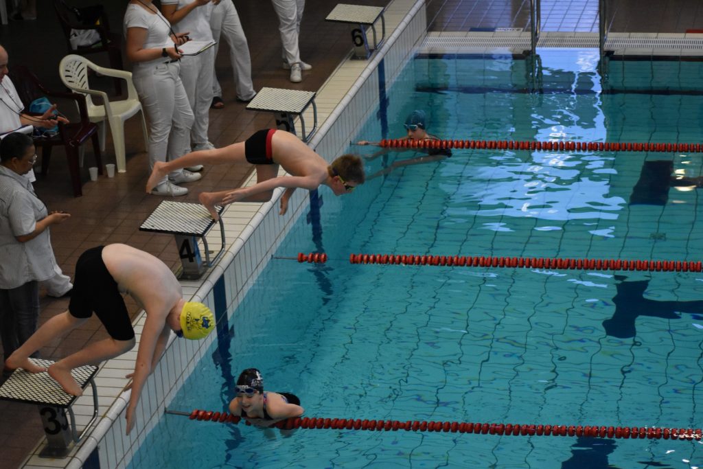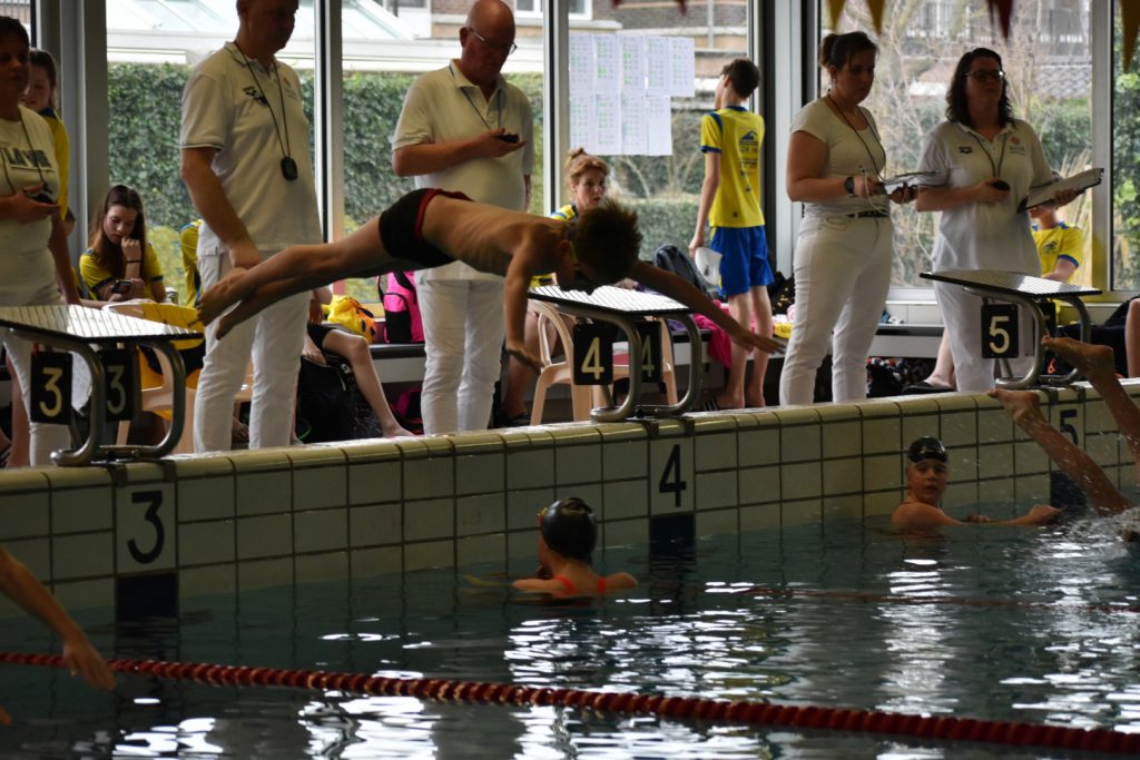 9 – 11 jaar (Minioren 4, 5, 6) 50m schoolslag (2x25m, inschrijftijd 53.43): DNF (startte vlinderslag en halverwege gestopt).